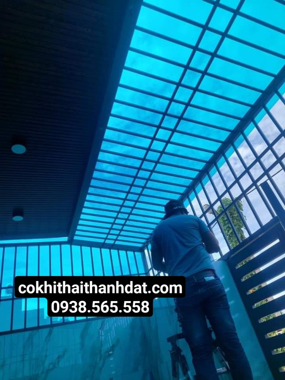 + Nhận thi công hàn khung sắt, gia cố khung kèo, lợp mái poly lấy sáng.