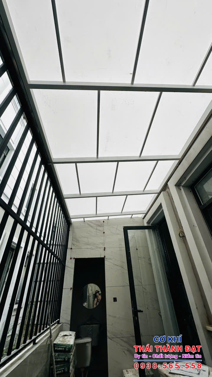 Sau khi thống nhất phương án và báo giá, đội thợ sẽ tiến hành gia công khung sắt tại xưởng hoặc trực tiếp tại công trình, đảm bảo đúng kích thước và độ chắc chắn. Tiếp theo là công đoạn lắp đặt tấm polycarbonate đúng kỹ thuật, sử dụng phụ kiện chuyên dụng, gioăng chống thấm và vít inox nhằm hạn chế tình trạng dột nước, cong vênh khi thời tiết thay đổi. Nhờ quy trình chuẩn, việc thi công mái nhựa polycarbonate Quận 11 thường hoàn thành nhanh chóng, gọn gàng và không làm ảnh hưởng nhiều đến sinh hoạt của gia đình hay hoạt động kinh doanh.